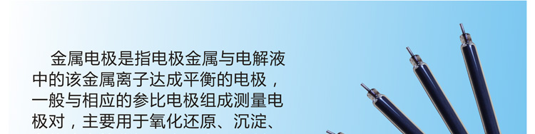 金屬電極是指電極金屬與電解液中的該金屬離子達成平衡的電極,如銀電極Ag/Ag+、鋅電極Zn/Zn2+等。一般與相應的參比電極組成測量電極對,主要用于氧化還原、沉淀等滴定分析。