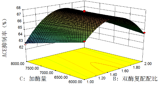 圖3-5. 雙酶復(fù)配配比和加酶量交互作用響應(yīng)曲面
