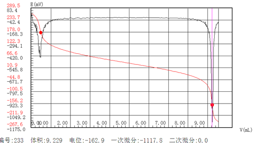 突躍量的選擇:經(jīng)過試驗(yàn),發(fā)現(xiàn)鹽酸金剛烷胺滴定時溶液第二終點(diǎn)電位突躍不很明顯,故選擇突躍量時應(yīng)特別注意。(建議**終點(diǎn)突躍量:500 第二終點(diǎn)突躍量:150。)