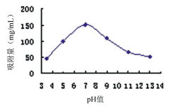 2.3.1.3 吸附pH的考察 將一定量的那他霉素浸提液分別調(diào)節(jié)成不同pH,然后使用HZ816樹脂吸附,考察pH對HZ816樹脂吸附量的影響,結(jié)果見圖4。